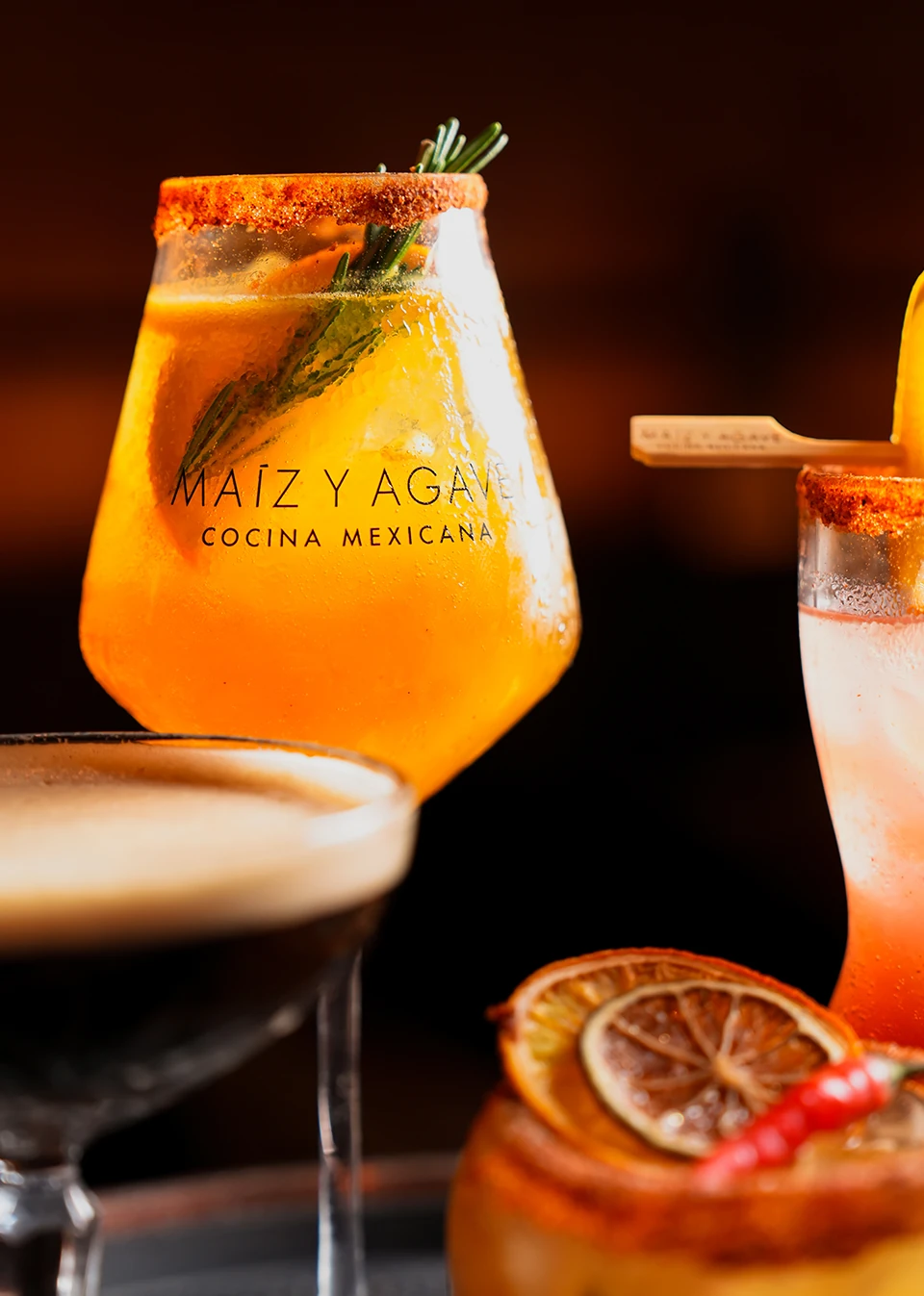 Drinks: Handcrafted cocktails featuring mezcal, tequila, and tropical flavors unique to Agave Restaurant Miami.